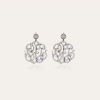 Boucles d’oreilles argentées, composées d’une fine arabesque habillée de strass Swarovski.
